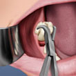 The site is numbed with local anesthetic. An elevator may be used to loosen the tooth. Appropriate forceps then remove the tooth.
